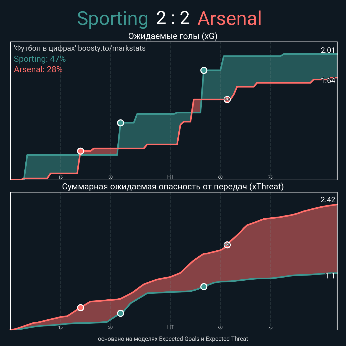 Ожидаемые голы (NPxG): 2.01 - 1.64