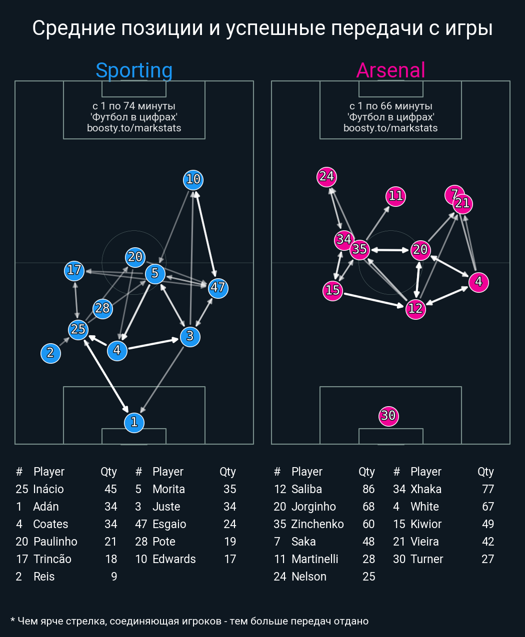 21 успешных передач из 28 попыток (2 под удар, 1 с продвижением, 14 на трети соперника)