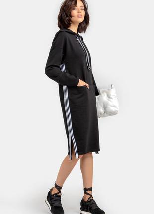 Удобное и модное длинное спортивное платье с капюшоном
