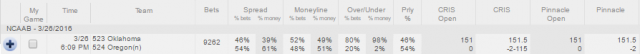 Betting line usually shows current odds or moneyline, point spread (handicap) and total for a particular event. For example we can have a line like this: