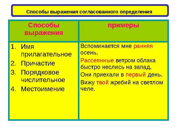 Способы выражения согласованного и несогласованного определения
