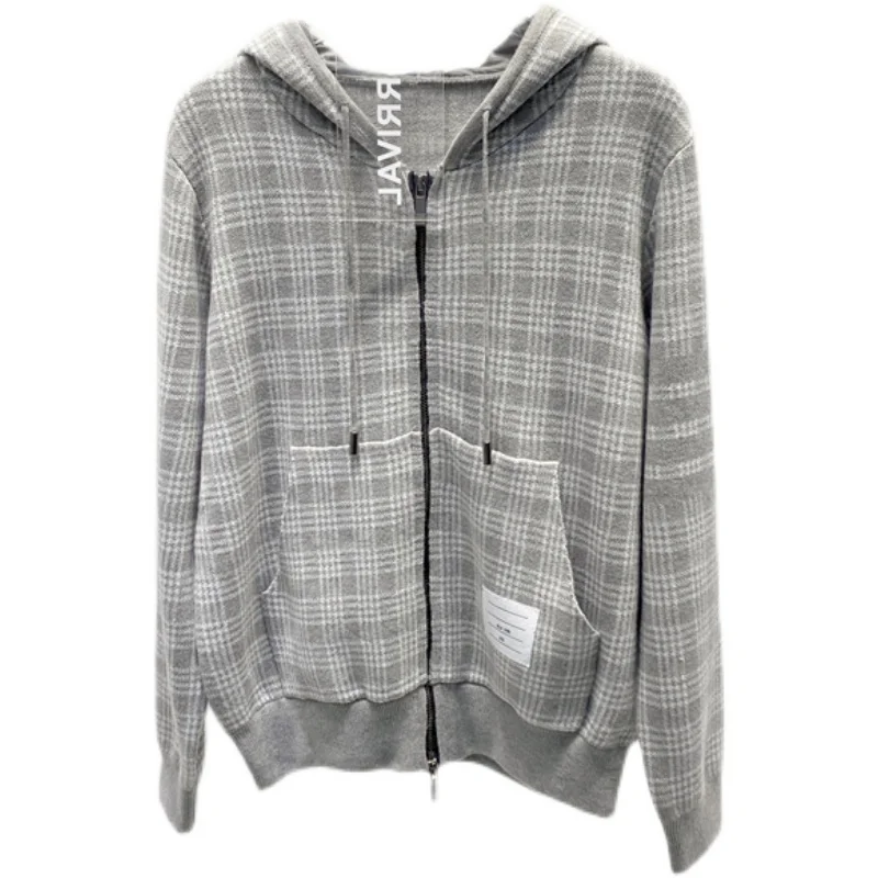 «Spot 2022 Autumn TB Four Bar Check Zipper Hooded Cardigan Wool Knitted Casual Men and Women with The Same Coat Tide» по лучшей цене на рынке! Всего за 46$ (4370рублей)