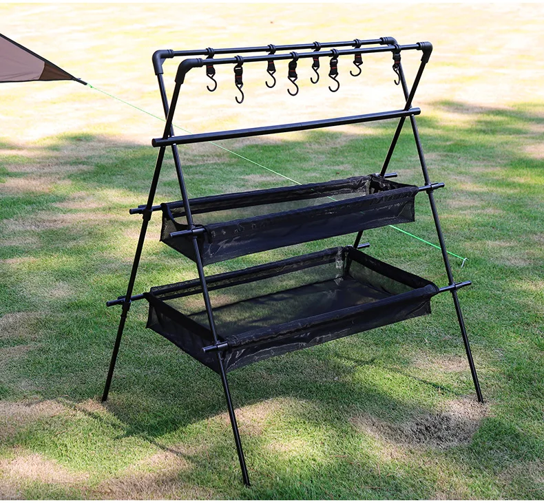 SqEThISZNlHere you can buy Spot Aluminum Alloy Portable Storage Hook Rack Outdoor Folding Tripod Camping Tableware Storage Organizing Rack with free delivery to your post office.