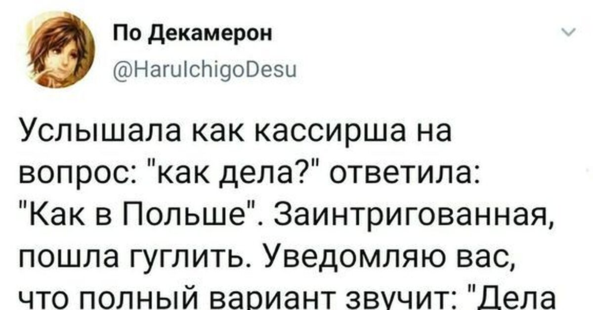 Спрашивает как дела и не отвечает