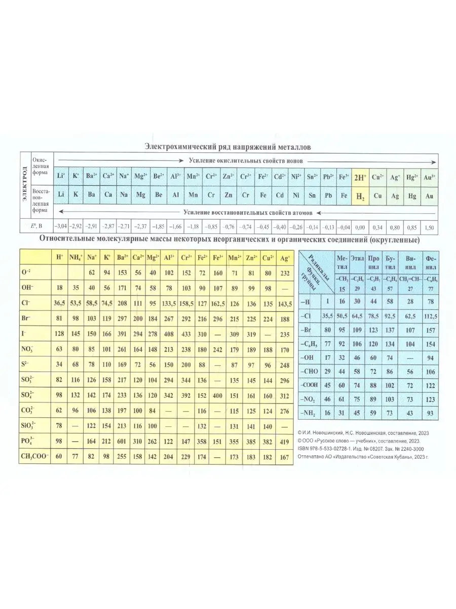 Справочные таблицы по химии