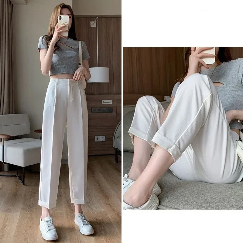 SIuTURNGLooked for Spring 2022 New Drape Suit Pants Women's Nine Points White Loose High Waist Slim Straight Harem Pants Simple And Stylish Mode for a long time, but could not find it? Bring to your attention Spring 2022 New Drape Suit Pants Women's Nine Points White Loose High Waist Slim Straight Harem Pants Simple And Stylish Mode with the best price!