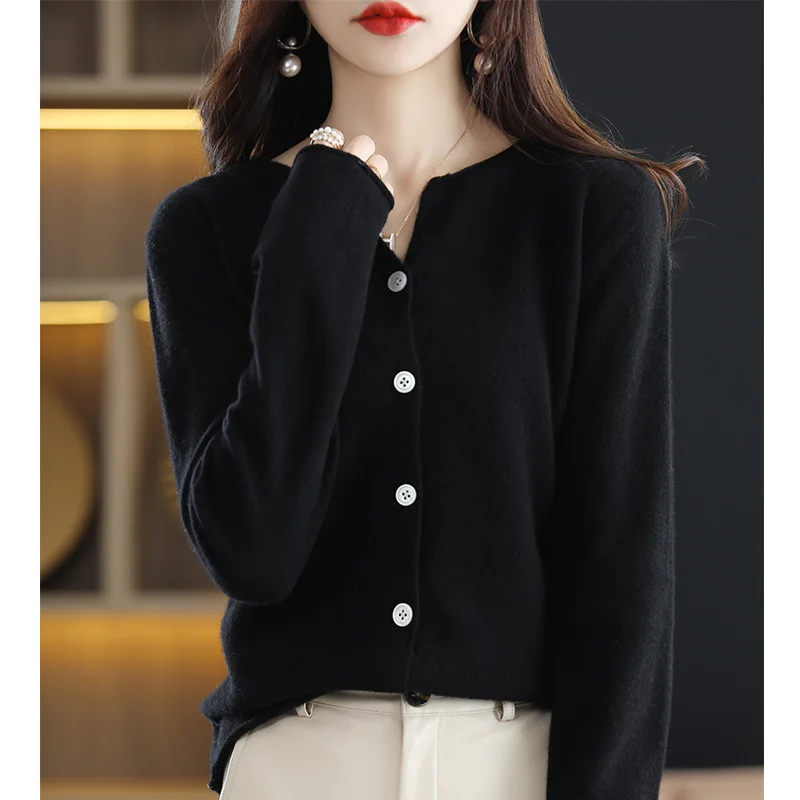 «Spring And Autumn New 100% Wool Round Neck Simple Sweater Cardigan Women Loose Thin Section All-Match Rolled Knitted Sweater» по лучшей цене на рынке! Всего за 38$ (3610рублей)