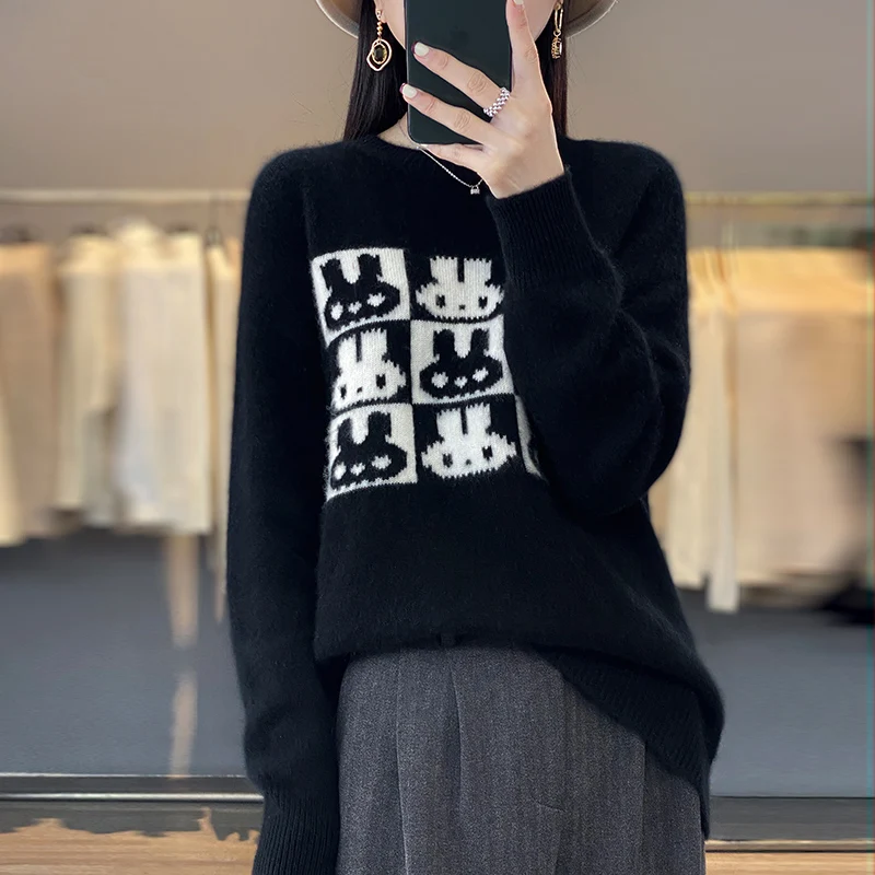 «Spring And Autumn Pure Wool Female Round Neck Nine Palace Plaid Rabbit Jacquard Fashion Sweater Knitted Bottoming Shirt» по лучшей цене на рынке! Всего за 44$ (4180рублей)