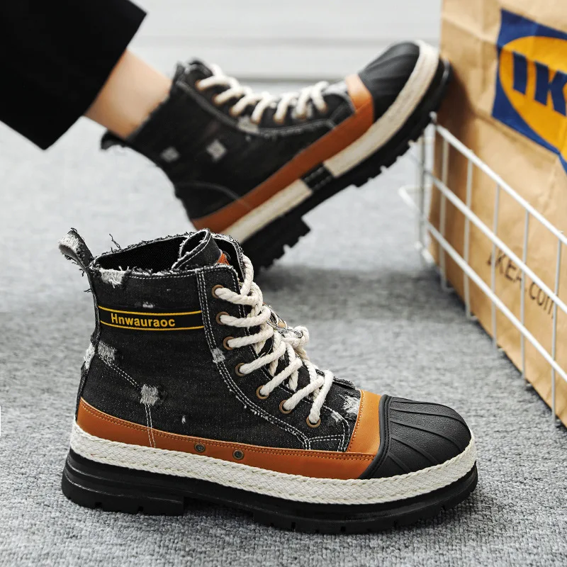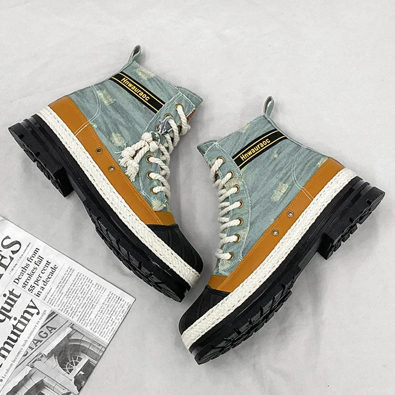 EYrsRHRBfHere you can buy Spring Autumn Men's Boots Cowboys Straw Weaving Niche Design High-end Color Scheme Thick Rope Design Thick Soled Short Boots with free delivery to your post office.