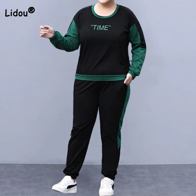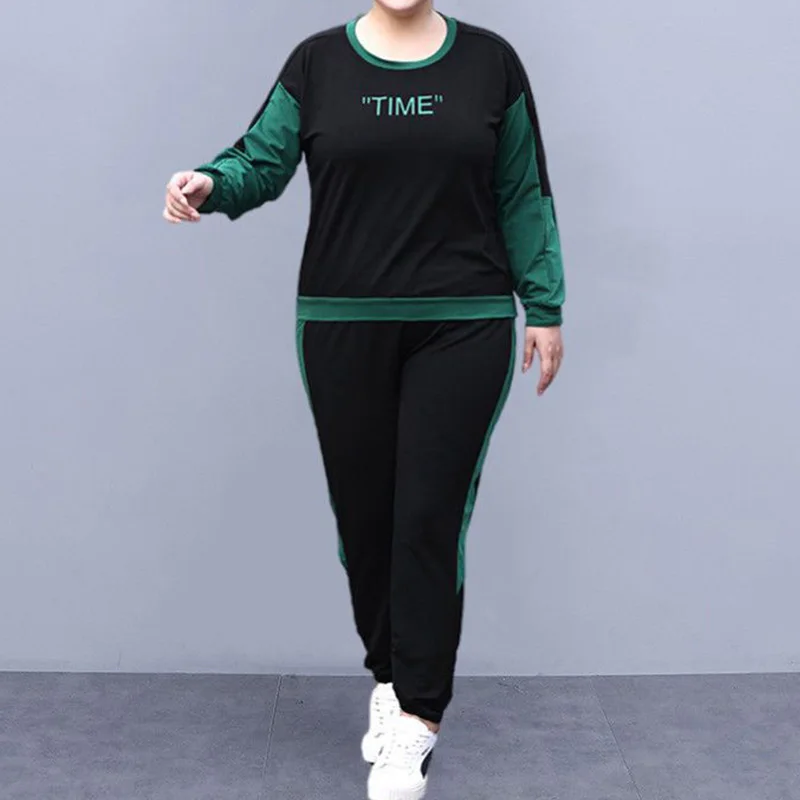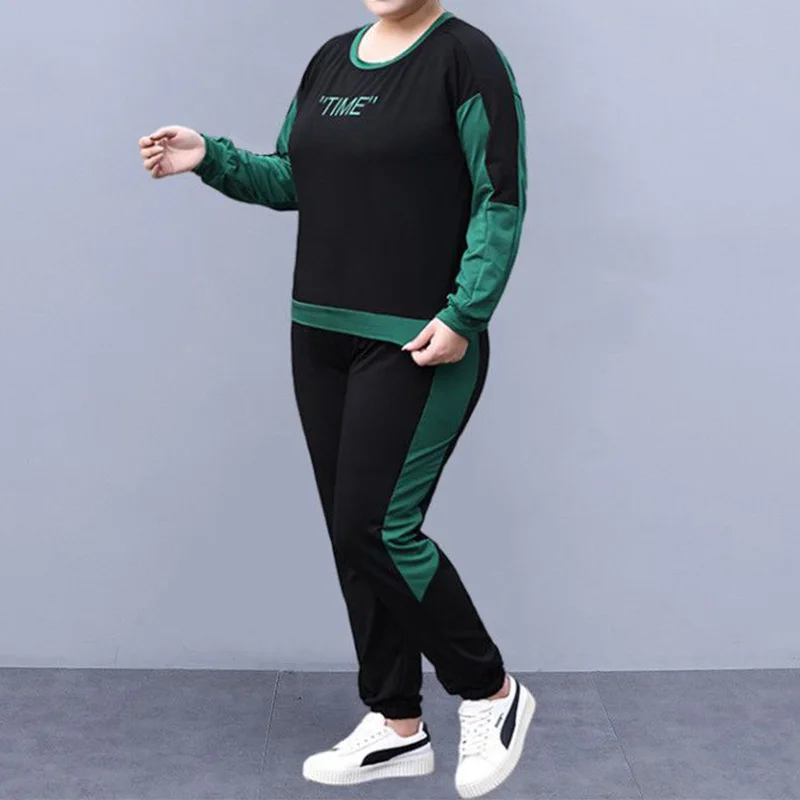 ZpJfcsdeUjHere you can buy Spring Autumn O-Neck Letter Printing Long Sleeve Top Elastic Waist Pockets Contrast Color Striped Sweatpants Lady Plus Size Sets with free delivery to your post office.