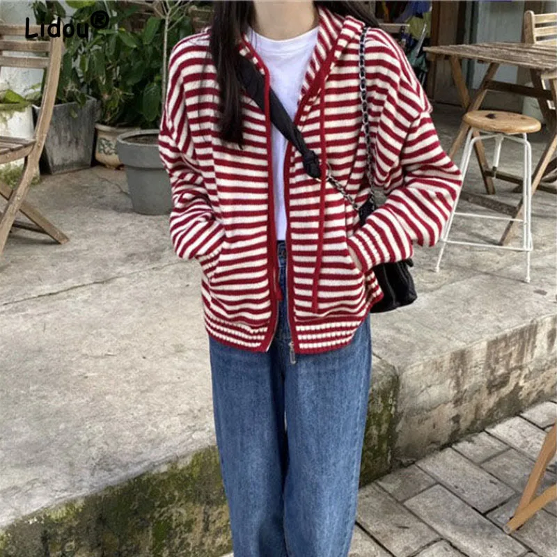 «Spring Autumn Striped Splicing Contrast Colors Knitted Hoodies Cardigan Sweaters for Women 2022 New Chains Design Casual Chictop» по лучшей цене на рынке! Всего за 17$ (1615рублей)