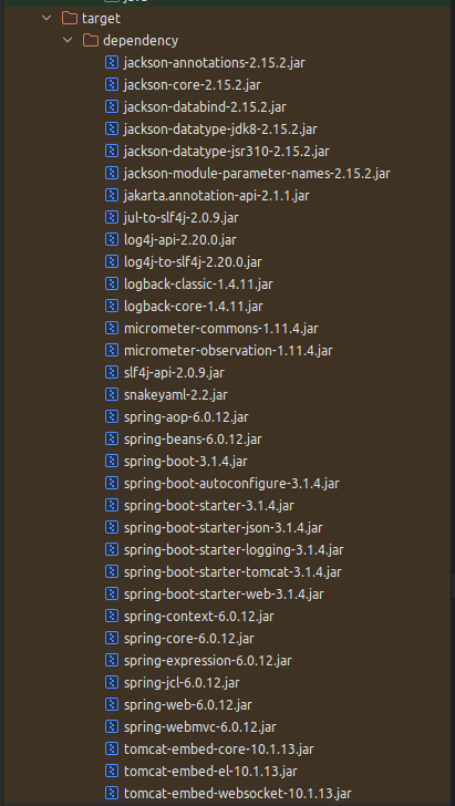 Результатом выполнения этой команды будет директория target/dependency со всеми зависимостями, требуемыми во время выполнения:
