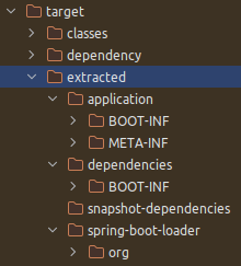 В результате мы получим в директории target/extracted директории, соответствующие четырём слоям: