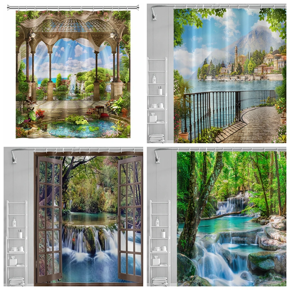 «Spring Natural Scenery Shower Curtains Mountain Water forest Landscape Waterproof Polyester Curtain For Bathroom Home Decoration» по лучшей цене на рынке! Всего за 13$ (1235рублей)