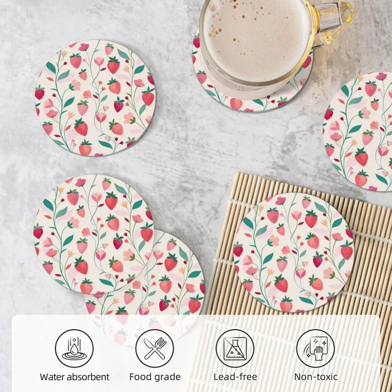 hUamlSeYmHere you can buy Spring Strawberries Coasters for Drinks with Holder 6 Pack Absorbent Ceramic Absorb Stone Coasters with Cork Base for Home with free delivery to your post office.