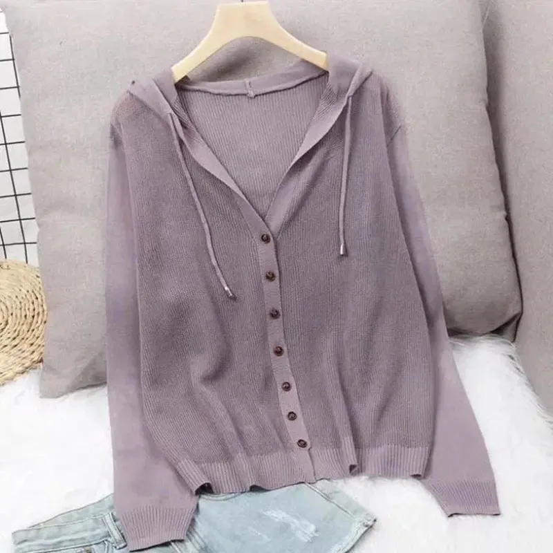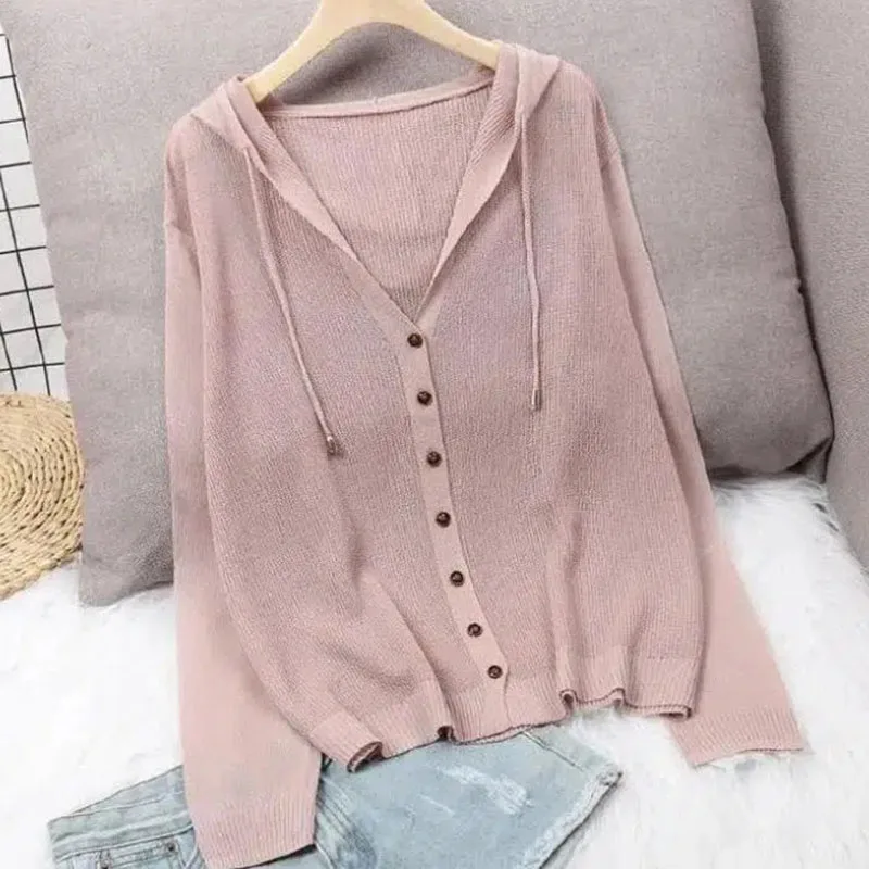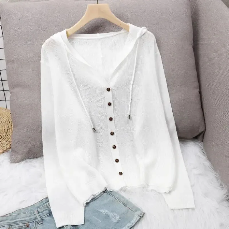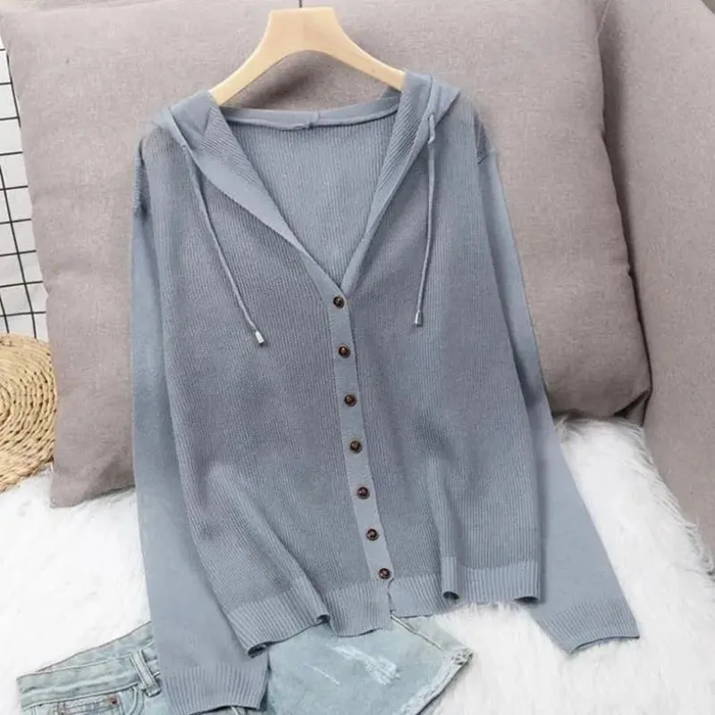ICZNUxBXZDHere you can buy Spring Summer Hooded Single Breasted Cardigans For Women Korean Fashion Plus Size Solid Color Thin Sweater Simple Sunscreen Tops with free delivery to your post office.
