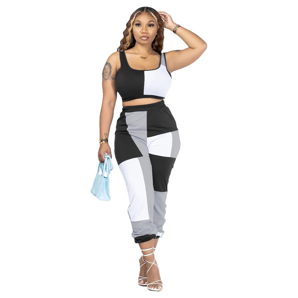 Spring Summer New Multicolor Patchwork Suits Tank Top For Women Matching Long Pants Fashion Casual Tracksuits Two Piece Set - Купить с бесплатной доставкой