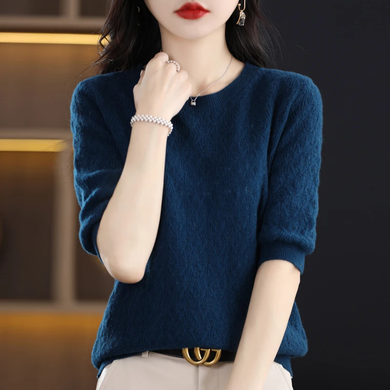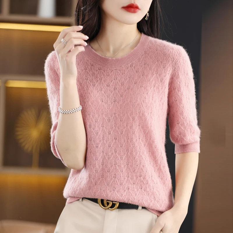 «Spring Summer New Pure Wool Women's Round Neck Pullover Hollowed-Out Short Sleeve Loose Wool Thin Bottom T- Top Korean Fashion» по лучшей цене на рынке! Всего за 24$ (2280рублей)