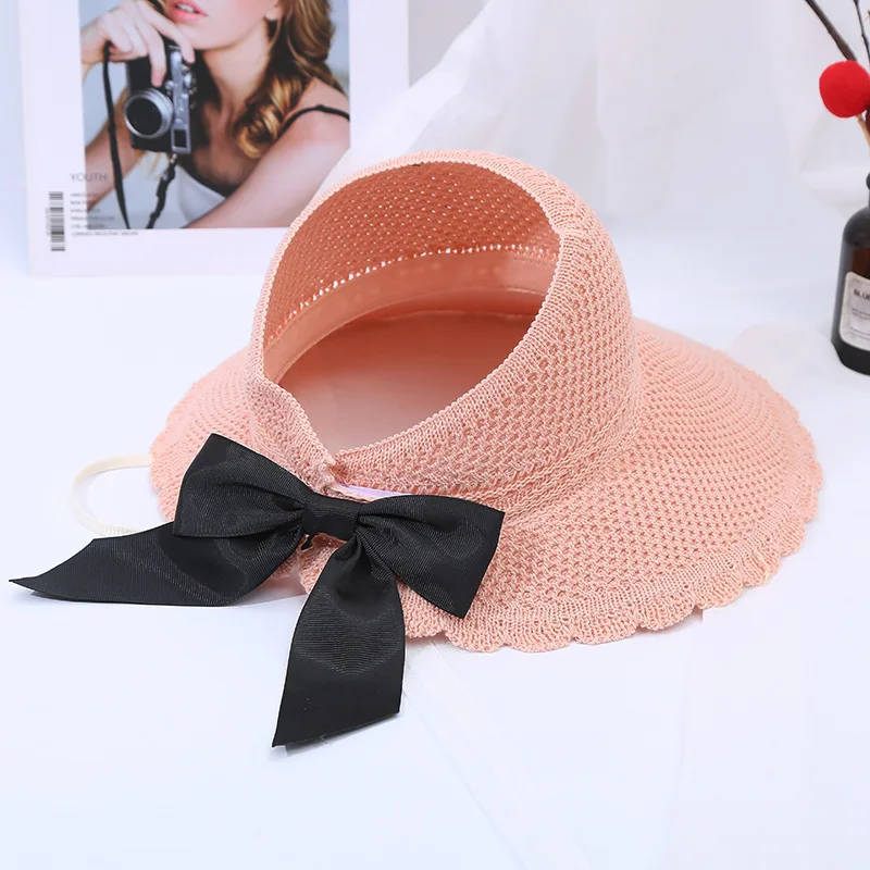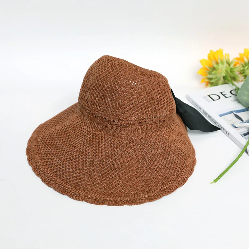 2020 Fashion Women Sun Hats Hand Made Straw Hat Female Ribbon Bow knot Wide Brim Beach Hat Casual Summer Shade Anti Uv Cap Buy 10 27
