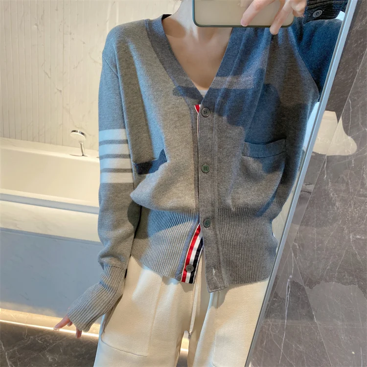 GukrjoIYДолго искали Spring and Autumn TB College Four-Bar V-Neck Gray Color-blocking Wool Knit Cardigan Casual Loose Contrast Color Jacket, но не могли найти? Предоставляем вашему вниманию Spring and Autumn TB College Four-Bar V-Neck Gray Color-blocking Wool Knit Cardigan Casual Loose Contrast Color Jacket по лучшей цене на рынке!