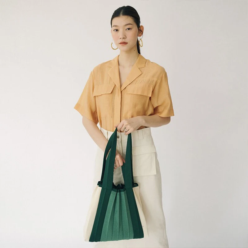 "Spring and Summer New Simple and Environmentally Friendly Pleated Color Matching Casual Large Capacity Shoulder Handbag" * Buy Now With Free Shipping Just For $70