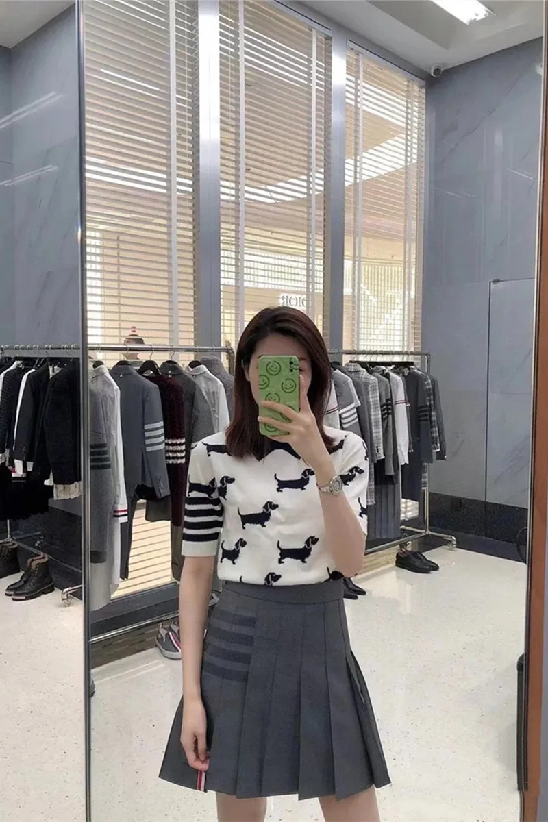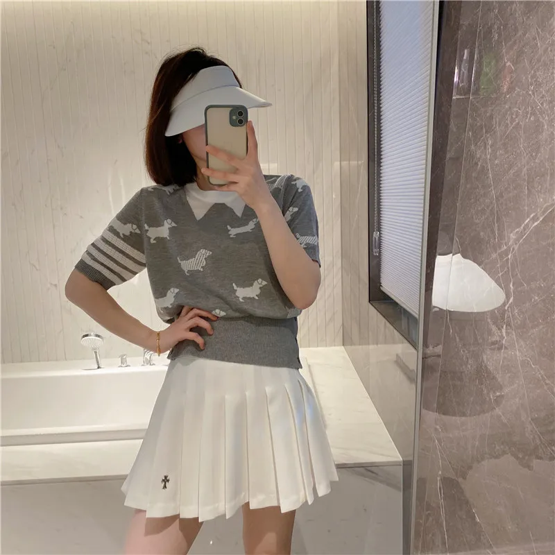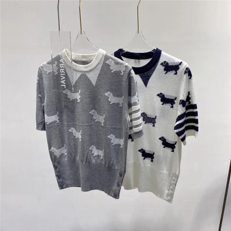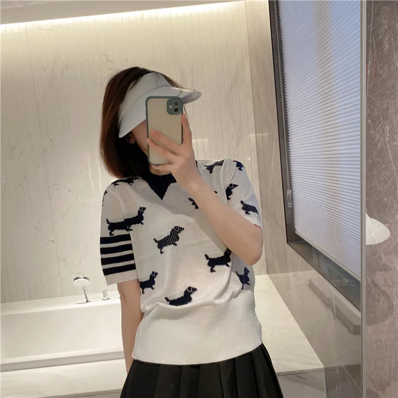 "Spring and summer tb college wind puppy jacquard wool knitted four-bar ins slim top design sense niche short sleeves" * Buy Now Just For 39$