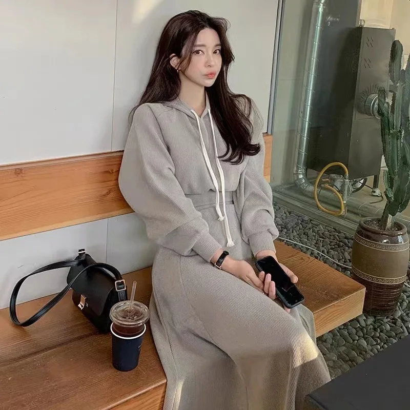 "Spring/Autumn Korean Women's Skirt Two-piece Tweed Dress + Long Sleeve Sweater Cardigan Set Elegant Two-piece Set Mid Length" * Buy Now Just For 11$