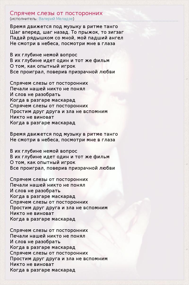 Спрячь слезы от посторонних текст