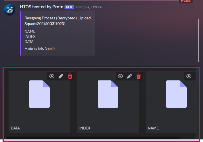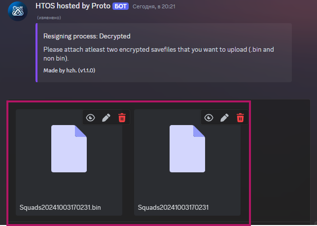 After sending, the bot will need time to replace the files with new ones, encrypt them and sign them with your PSN ID that you specified at the beginning. When finished, the bot will send you a zip archive with the finished files.