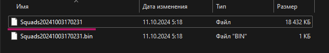 In the archive there will be 2 files of this type: “Squads20241003170231” and “Squads20241003170231.bin”