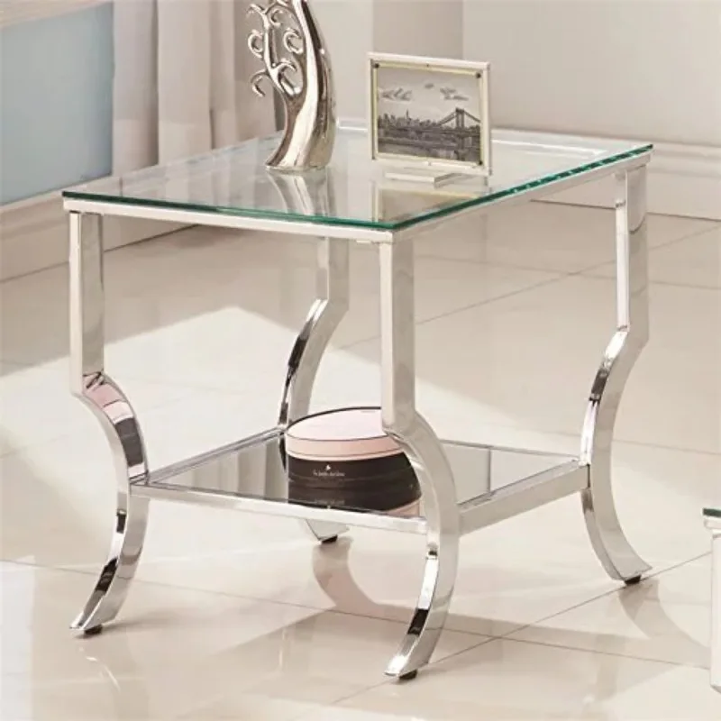 "Square End Table with Mirrored Shelf Chrome-Shape:Square" * Buy Now With Free Shipping Just For $78