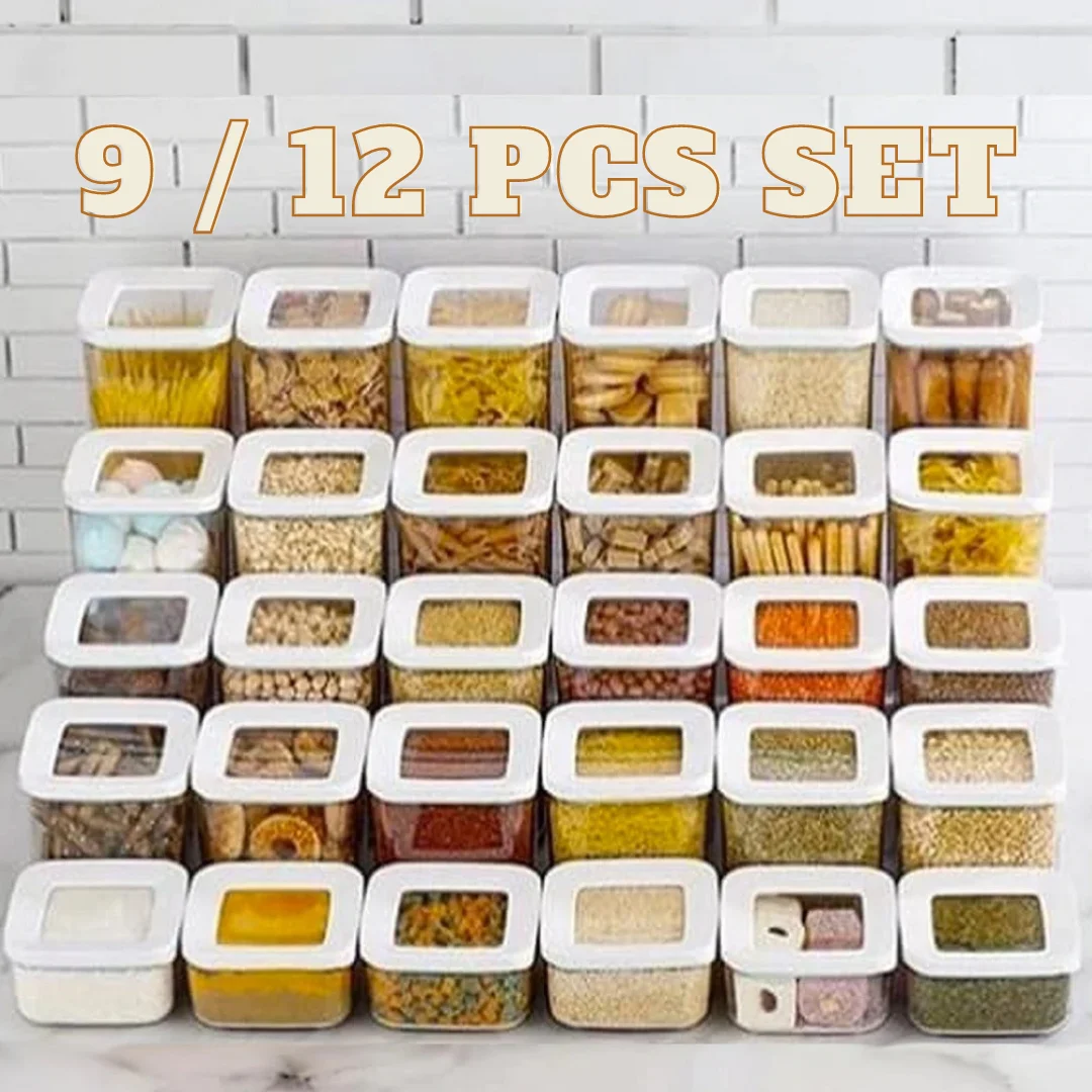 "Square Storage Box 9/12 Pcs Kitchen Organizer Food Container Set Vacuum Airtight Food Rice Pasta Tea Sugar Coffee high quality" * Buy Now With Free Shipping Just For $86
