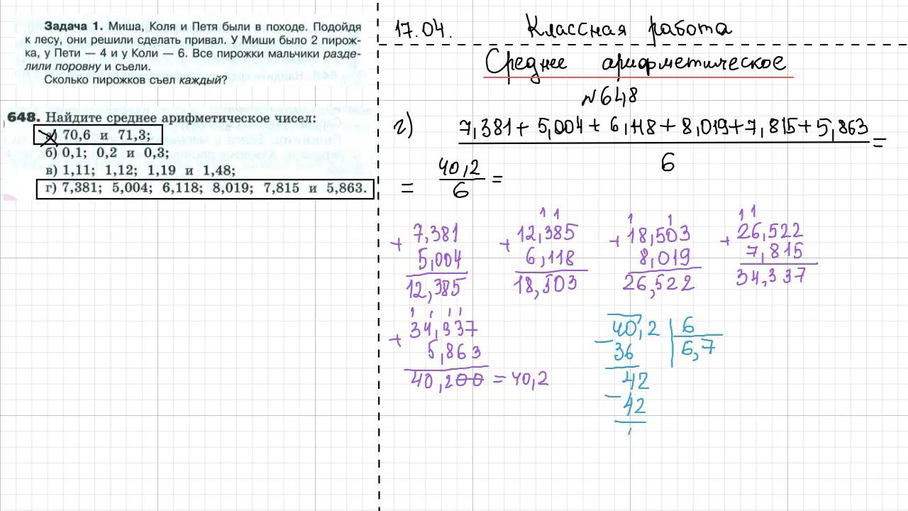 Среднее арифметическое пяти чисел 4.7 а сумма
