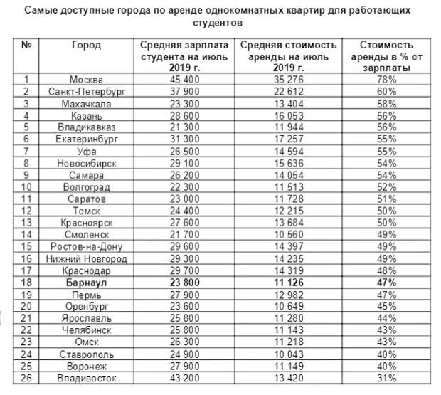 Средняя зарплата студента