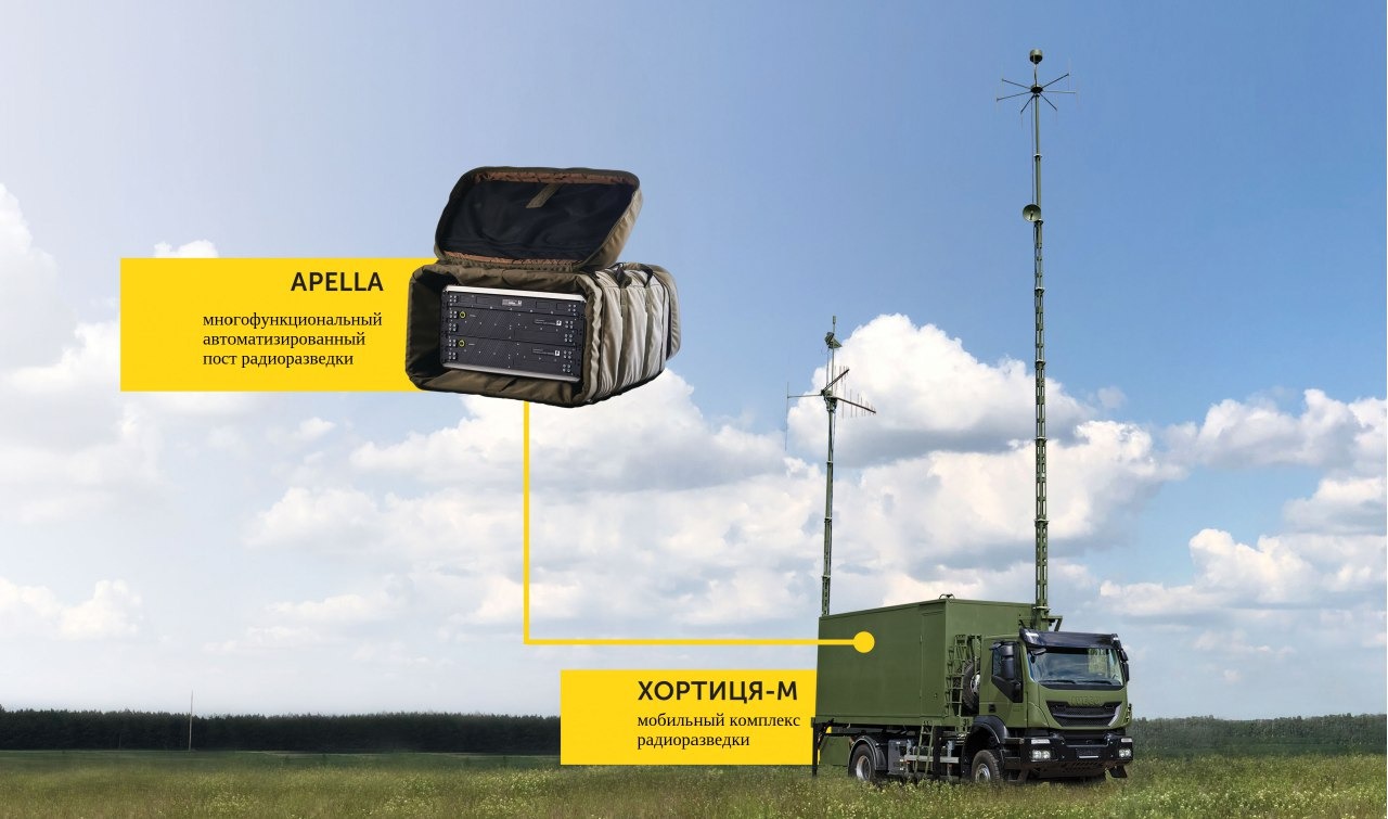Многофункциональный автоматизированный пост радиоразведки APELLA входит в состав мобильного комплекса радиоразведки ХОРТИЦА-М, о котором мы уже поговорили в первой части.