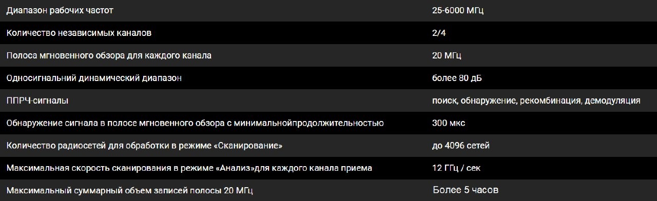 одновременная обработка до 1024 каналов в полосе мгновенного обзора до 800 МГц;