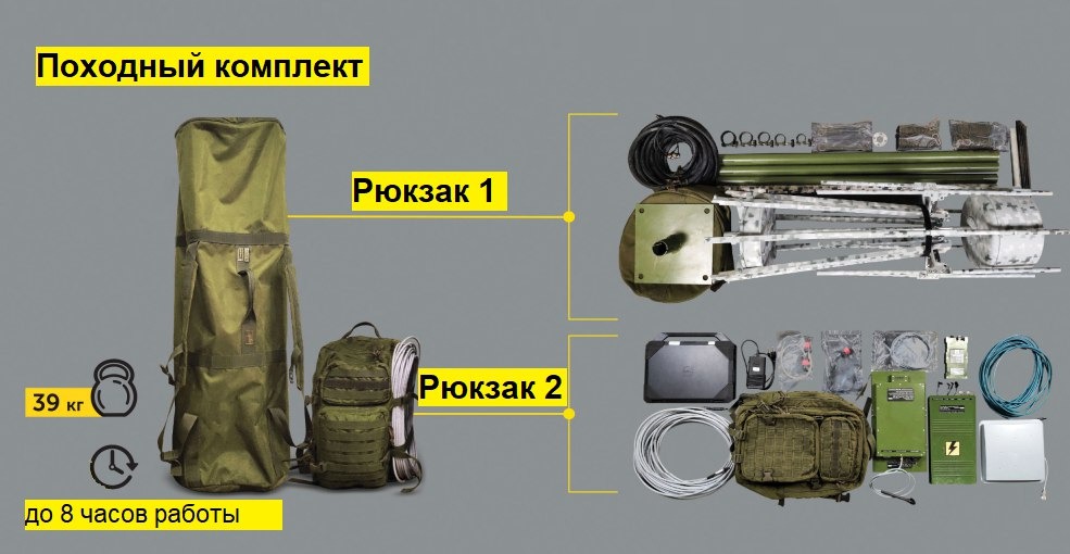 Вес производного варианта до 39 кг (это общий вес на два рюкзака), а это не так много для целого комплекса, однако автономность работы тоже не такая уж и большая, на штатных батареях всего 8 часов, поэтому для непрерывности разведки придется решать вопрос с электропитанием. Тем не менее, для тактического уровня весьма годный вариант, вышли, оценили РЭО, и ушли, достигается высокая мобильность групп тактической радиоразведки.