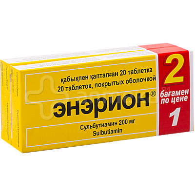 Инструкция на Энерион рекомендует его применение только взрослыми пациентами . Таблетки принимают перорально (внутрь), запивая водой . Обычно суточная доза сульбутиамина равняется 400-600 мг (2-3 табл .) . Прием таблеток лучше всего производить два раза в день во время приема пищи (за завтраком и обедом) .