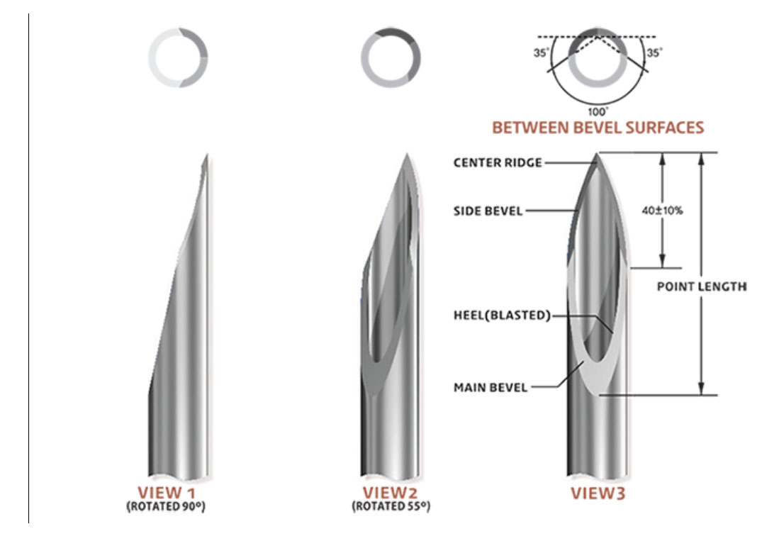 Срезом вверх игла