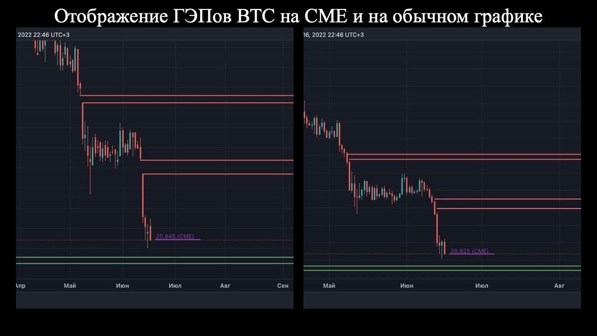 Модернизирована опция «СМЕ». Теперь, при активации данной опции, отображается не только цена фьючерсов ВТС на СМЕ, но и ГЭПы, которые образовались на истории графика СМЕ