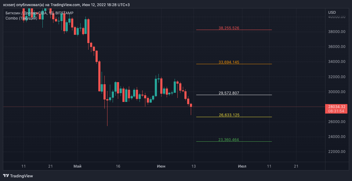 Данные уровни строятся, исходя из закономерностей котировок индекса SnP-500, относительно BTC (актуально только для BTC)