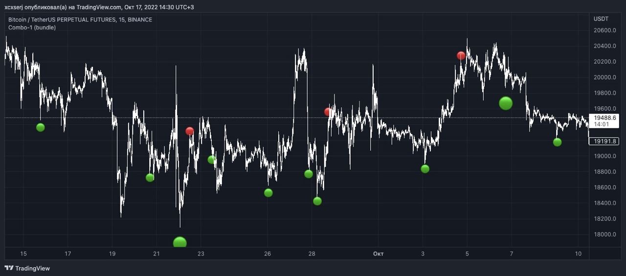 Добавлен сигнал, который показывает вероятностные точки отскока цены от уровней Combo.
