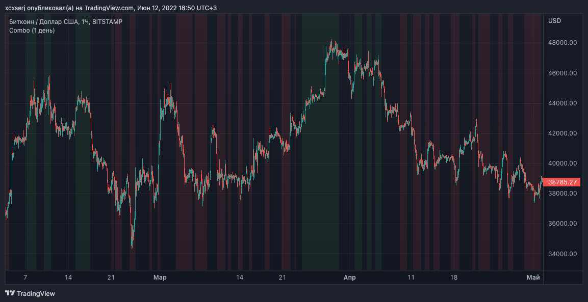 Данный индикатор хорошо подходит, как для среднесрочной торговли, так и для внутридневной, так как он предоставляет информацию и о возможных обвалах цен, которые берутся из блокчейн-аномалий, показывает взаимодействие со скользящей средней, указывает на актуальные уровни, которые обновляются каждый день (если активирован 1д ТФ), а так же в фоновом режиме указывает на тренд (в том числе и вышестоящего ТФ) с возможностью поиска совпадений тренда младшего и старшего ТФ.