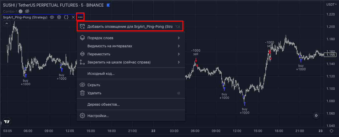 - после того, как вы нашли подходящие настройки и убедились в том, что хотите работать по этой стратегии, вы можете настроить алерты (оповещения) и торговать вручную или через ботов, используя URL-вебхуки