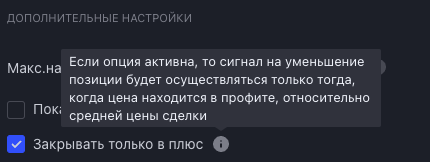 6) Добавлена возможность закрывать позицию (часть позиции) только в плюс