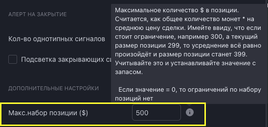 4) Добавлена возможность ограничивать максимальный набор позиции в $