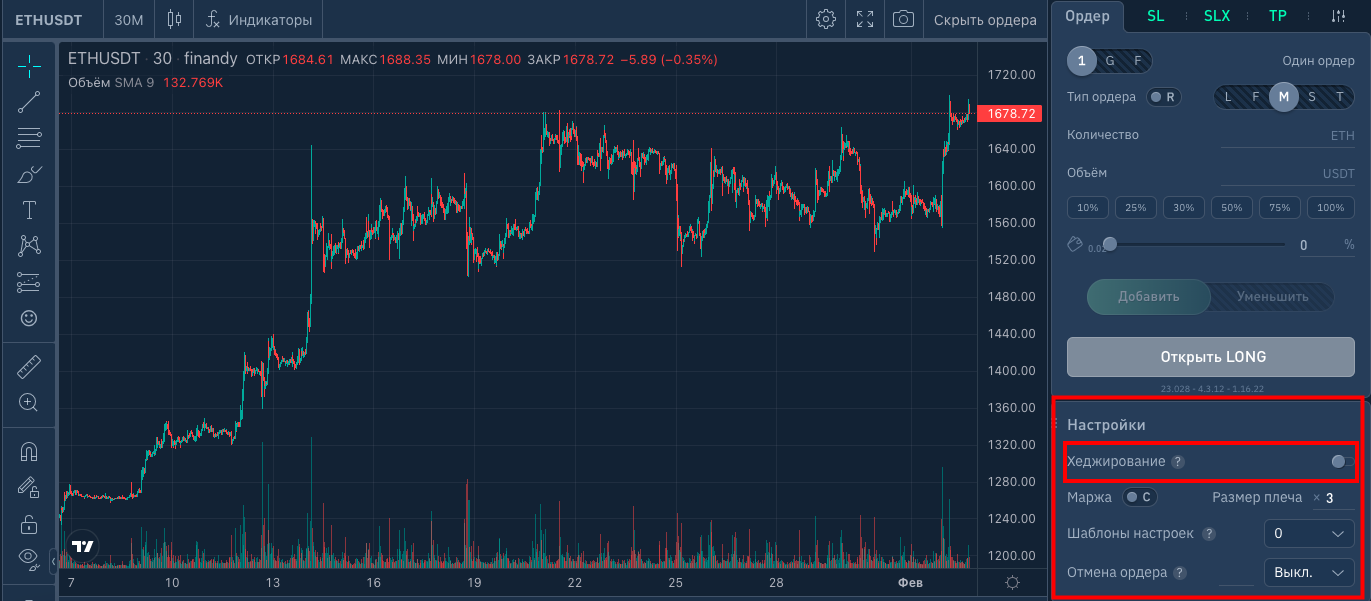 - на платформе Finandy отключаем хедж-режим