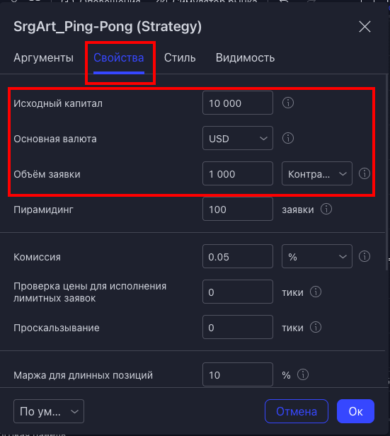 - в настройках стратегии можно выбрать, какой будет использоваться депозит и на какую сумму (или на какое количество монет) будет осуществляться покупка/продажа