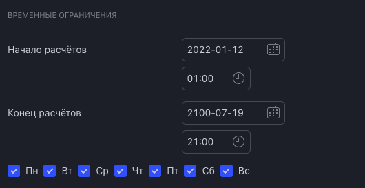 2) Добавлены временные ограничения (общие и по дням недели)