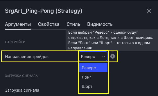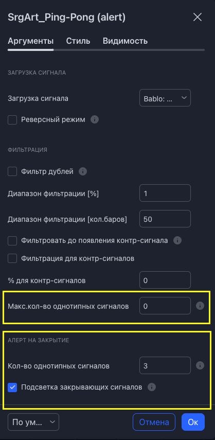 Данная опция доступна в версиях alert и strategy Ping-Pong